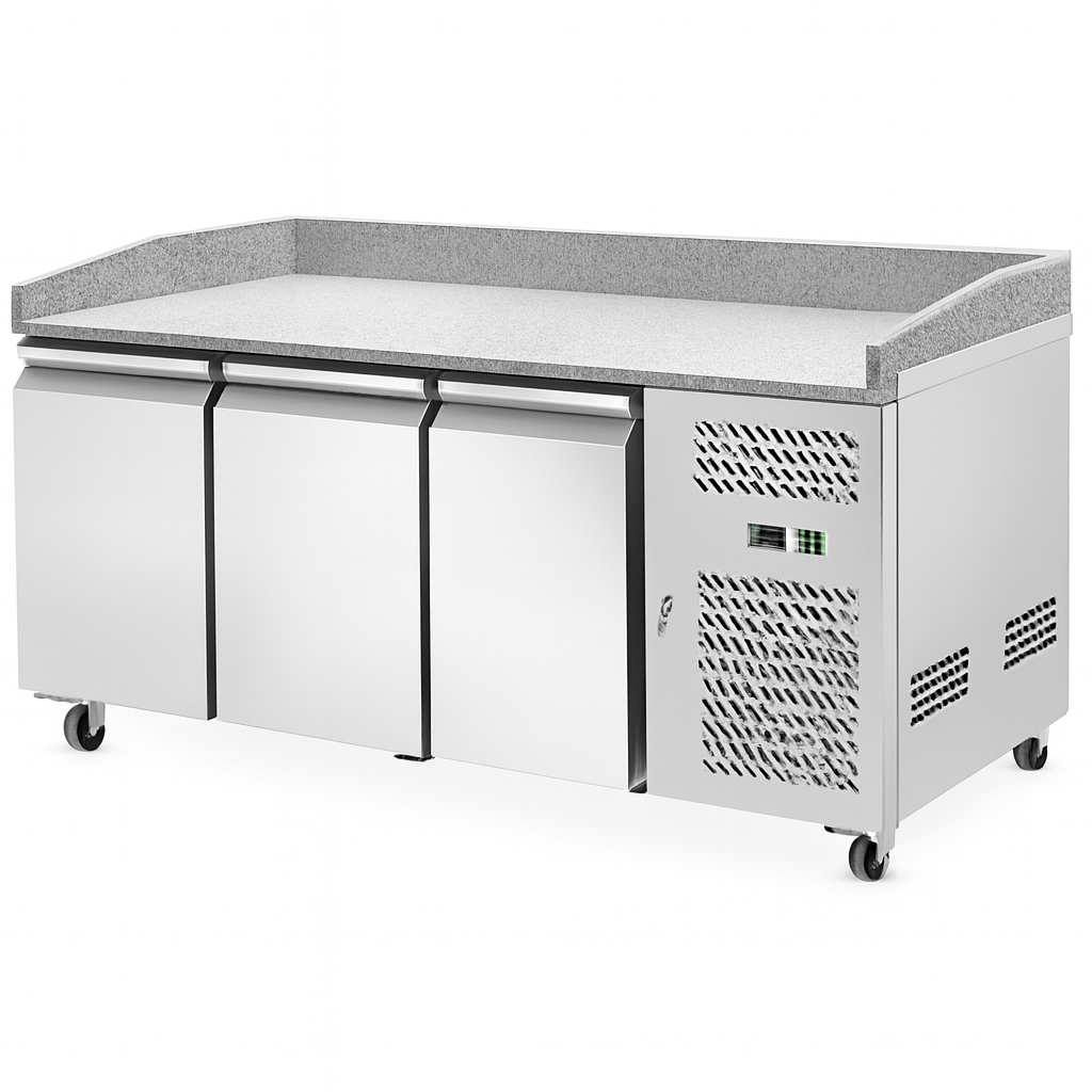 The AA Catering PZ‑3600TN 3-Door Pizza Prep is built for high‑demand commercial environments, offering a generous 580L capacity within a durable 304 stainless‑steel foamed cabinet. Powered by an Embraco EM2X3125U compressor (220V/50Hz) and using R290 refrigerant, it delivers efficient cooling with a stable operating range of –2°C to 8°C. The Carel digital thermostat ensures accurate temperature control, while the unit features copper and aluminium fin evaporator and condenser components for reliable performance.