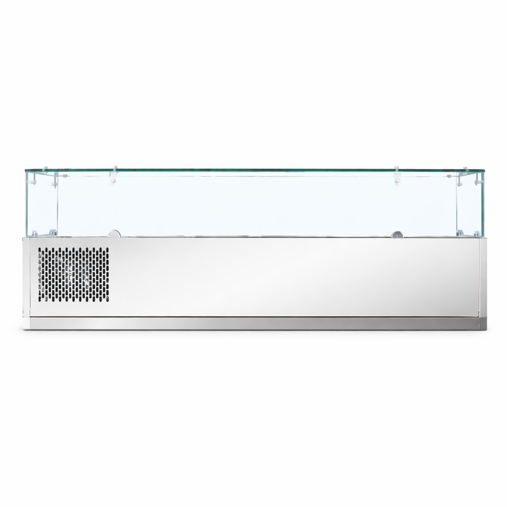 The AA Catering VRX1200/380 Topping Rail is built for reliable commercial use, featuring a durable 304 stainless‑steel foamed cabinet and efficient R290 refrigerant cooling. A Carel digital thermostat ensures accurate control, maintaining a steady 0–10°C operating range for chilled ingredients.